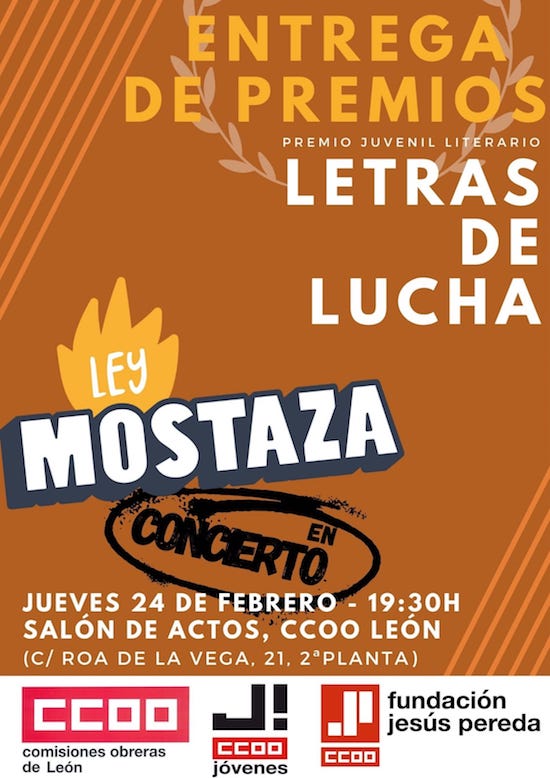 Este jueves 24 de febrero, a las 19:30 horas, en el Salón de Actos de CCOO de León, se desvelarán los nombres de los ganadores y tendrá lugar la entrega de premios del I Certamen de Relato Corto ‘Letras de Lucha’, una iniciativa de Jóvenes de CCOO que pretende instaurarse en el tiempo para aunar cultura y reivindicación, incentivando la creación literaria de la juventud leonesa.