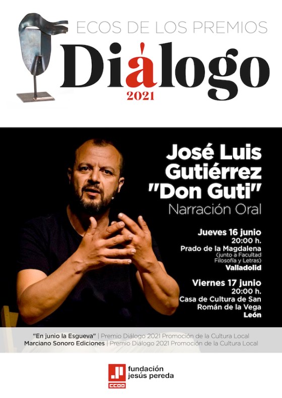 José Luis Gutiérrez, ‘Guti’, contará historias de la narración oral capaces de conectar diferentes generaciones, en un acto organizado por la Fundación Jesús Pereda por partida doble: el jueves 16 de junio a las 20h junto a la Facultad de Filosofía y Letras de la Universidad de Valladolid, y a la misma hora el viernes 17 de junio en la Casa de Cultura de San Román de la Vega en León.