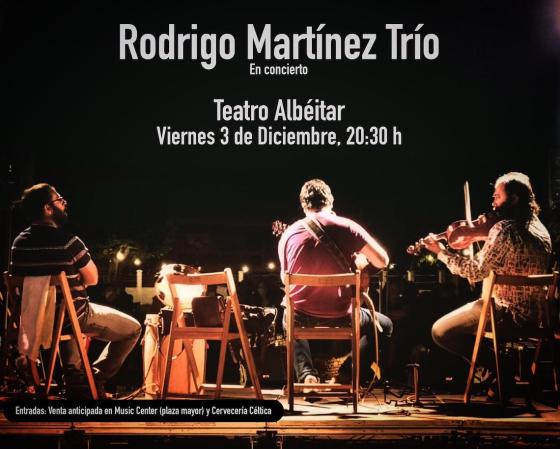 Este viernes 3 de diciembre, a las 20:30 horas, el teatro El Albéitar (León) acogerá el concierto de presentación de Rodrigo Martínez Trío, un proyecto en el que participan también, además del multi-instrumentista leonés que da nombre al grupo, el violinista Jaime del Blanco y el acordeonista Sergio Rodríguez. Las entradas, al precio de 8 €, ya están disponibles de manera anticipada en Music Center y Cervecería Céltica.