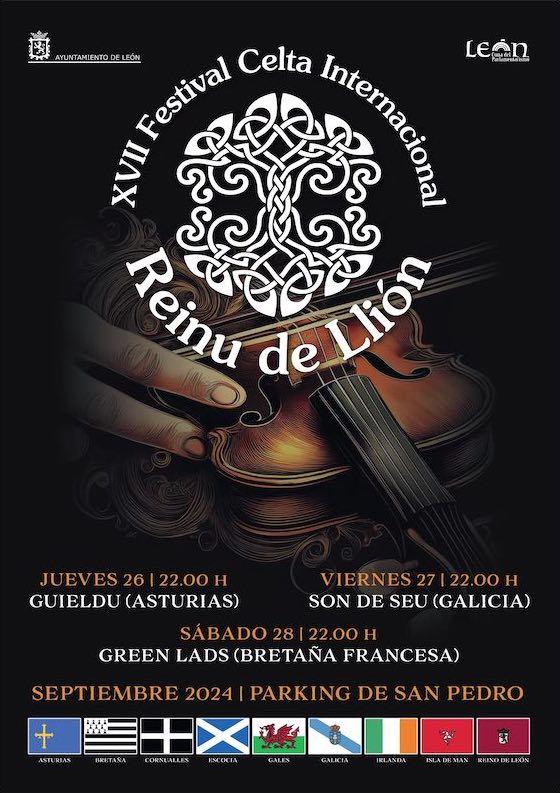 El Festival Celta Internacional regresa León como aperitivo musical previo a las fiestas de San Froilán, del 26 al 28 de septiembre. El Parking de San Pedro, detrás de la catedral, acogerá los conciertos de Son de Seu (Galicia), Guieldu (Asturias) y Green Lads (Bretaña Francesa), que se celebrarán a partir de las 22:00 horas. Entrada libre.