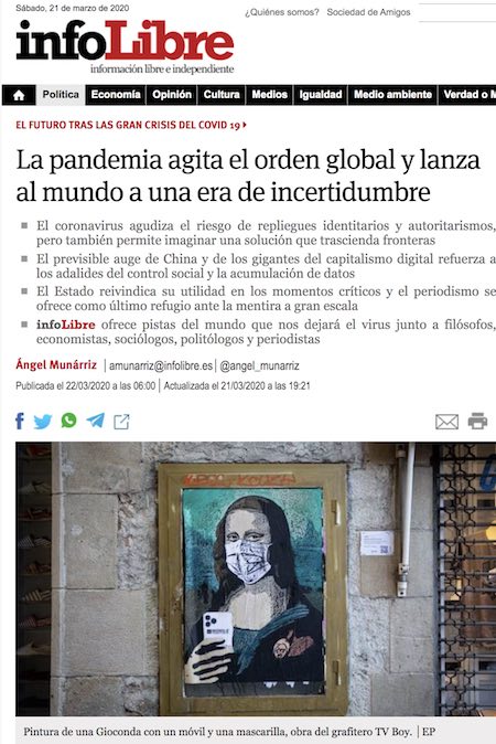 En este post iremos añadiendo enlaces a distintos artículos (información y opinión) de la prensa nacional e internacional, que nos parecen interesantes para reflexionar sobre lo que está pasando en España y en el Mundo con motivo de la pandemia global.