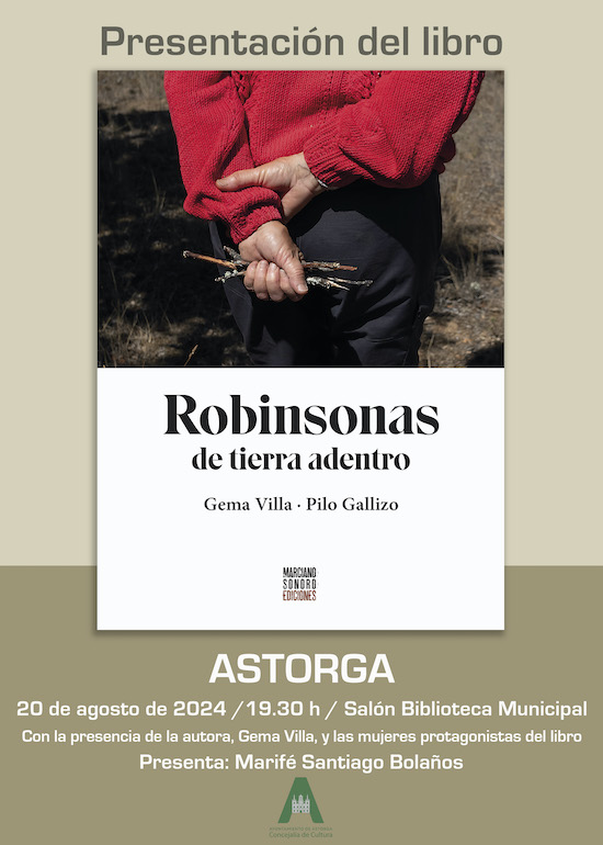 Este martes 20 de agosto (y después de varias presentaciones por diferentes pueblos de la provincia) la editorial leonesa independiente Marciano Sonoro presenta en la Biblioteca Municipal de Astorga (a las 19,30 horas) ‘Robinsonas de tierra adentro’, un libro de la periodista Gema Villa sobre mujeres que viven en la soledad del mundo rural, realizado en colaboración con la fotógrafa Pilo Gallizo.