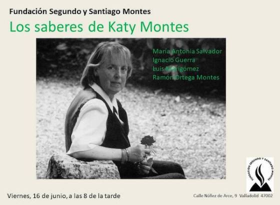 «Los saberes de Katy Montes». Así se titula el encuentro que este viernes 16 de junio, a las ocho de la tarde, ha convocado la Fundación Segundo y Santiago Montes, en Valladolid, para recordar a su fundadora, fallecida en 2011. Participarán: Mª Antonia Salvador, Ignacio Guerra, Luis Marigómez, Ramón Ortega Montes. Entrada libre.