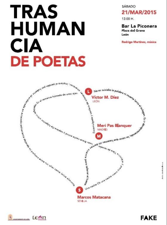 La revista FAKE, con apoyo de la Concejalía de Cultura del Ayuntamiento de León, ha organizado un recital de poesía para el sábado 21 de marzo, que se conmemora como Día Mundial de la Poesía. Se hará en el bar La Piconera, en la Plaza del Grano (León), a la una del mediodía. Intervendrán los poetas Víctor M. Díez, Meri Pas Blanquer y Marcos Matacana, y el músico Rodrigo Martínez.