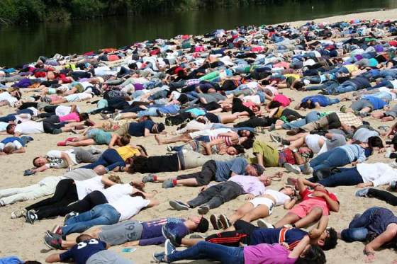 Por ISAAC MACHO.— En el marco del TAC, numerosas personas participaron en la playa de las Moreras de Valladolid en una «tumbada” masiva para protestar por los “sueños ahogados” de miles de emigrantes que el año pasado murieron en el Mediterráneo huyendo de la guerra de Siria o del hambre.