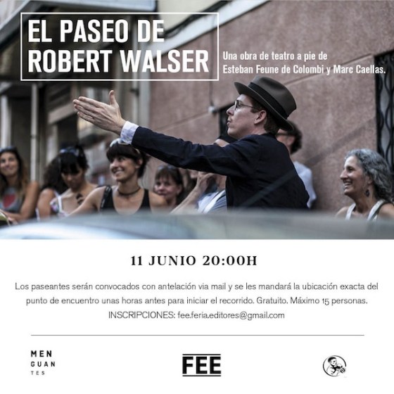 Este viernes 10 de junio a las 20h, dentro de las actividades organizadas por la Feria de editores FEE, tendrá lugar en León una presentación doble y caminada (sí, caminada) de dos libros singulares: Dos hombres que caminan y Notas de suicidio. El punto de partida será la Librería Galatea (C/ Sierra Pambley 1) y la presentación correrá a cargo de los autores Marc Caellas y Esteban Feune de Colombi. // Al día siguiente, sábado 11, a las 20 horas, ambos autores protagonizarán la actividad de teatro a pie «El paseo de Robert Walser». El lugar se comunicará por mail a los participantes. Inscripciones vía mail (15 plazas, por orden de inscripción).