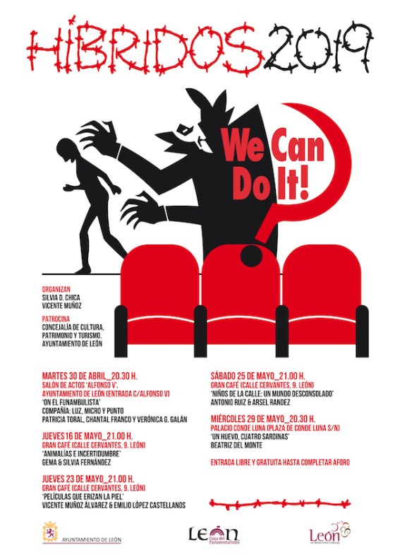 El Gran Café, el Salón de Actos del Ayuntamiento de León y el Palacio del Conde Luna acogerán entre el 30 de abril y el 29 de mayo ‘Híbridos 2019’, un programa que da voz «a los eventos culturales más alternativos y underground de la ciudad». Se trata de la cuarta edición de este evento organizado por los escritores leoneses Silvia D. Chica y Vicente Muñoz, y patrocinado por la Concejalía de Cultura, que en esta ocasión contempla cinco actuaciones relacionadas con distintas disciplinas: teatro, música y poesía, cine, fotografía y danza. La entrada será libre y gratuita hasta completar aforo.