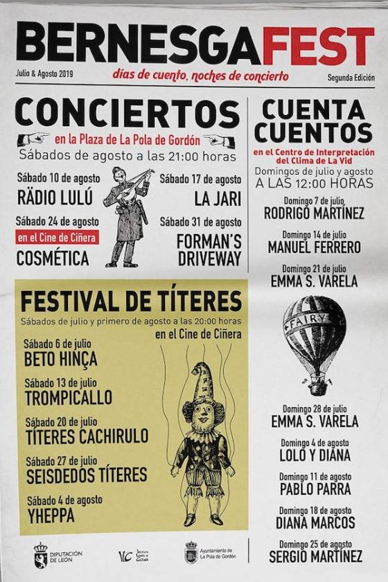 Este fin de semana, 20 y 21 de julio, llegan los títeres de la compañía Cachirulo, y los cuentacuentos de Emma S. Varela, al BernesgaFest que se desarrolla en la comarca leonesa de Gordón, para disfrute de los más pequeños especialmente, pero también de los mayores. Entrada gratuita.