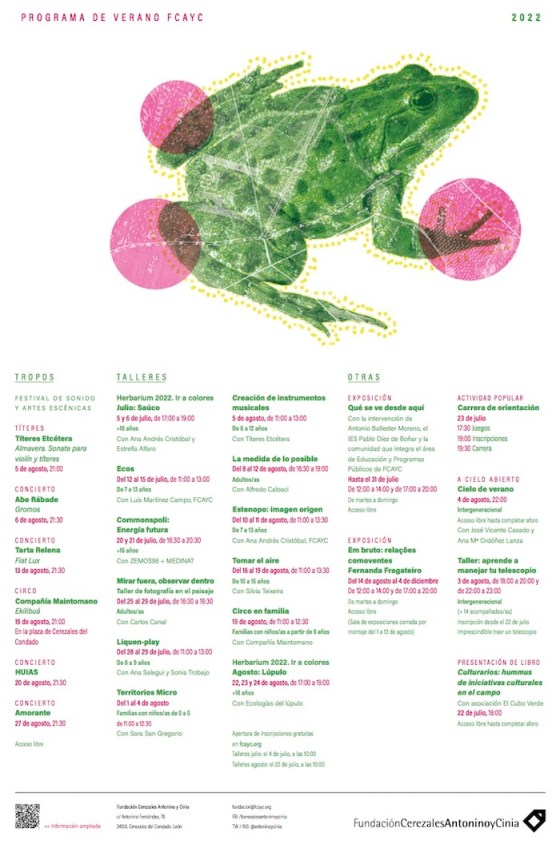 La Fundación Cerezales ofrece para este verano 2022 una programación con más de 20 actividades gratuitas para todos los públicos, durante los meses de julio y agosto, en su sede ubicada en la localidad leonesa de Cerezales del Condado.
