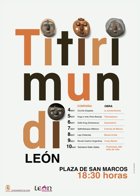 El Festival Internacional de Títeres de Segovia «Titirimundi» hace este año parada en León y desde el pasado sábado 4 y hasta el viernes día 10 de mayo el Anfiteatro de San Marcos (Ágora de la Poesía) acoge, a partir de las 18:30 horas, a siete compañías de reconocido prestigio internacional. Este 6 de mayo es el turno de la compañía de Dinamarca SofieKrog que estrena en esta edición la obra “Quacksalver”. La entrada para todos los espectáculos es libre y gratuita.