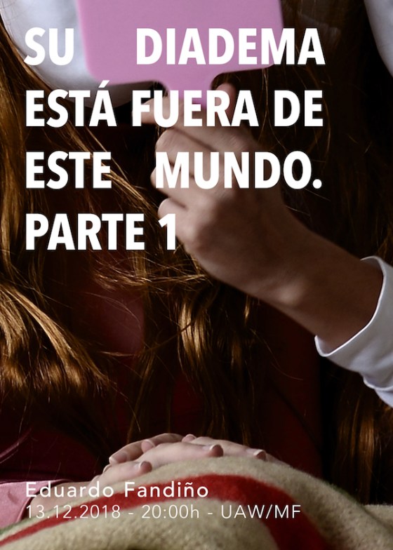 El artista Eduardo Fandiño y el III festival de polipoesía OLLAGORU presentan este sábado 9 de febrero, a las 13 horas, en el nuevo espacio «EF», la segunda parte de la pieza «Su diadema está fuera de este mundo», concebida como un montaje audiovisual experimental, con banda sonara de Genzo P.