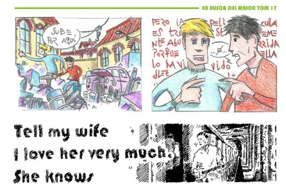 17 tira de “En busca del Major Tom”, del dibujante leonés Alberto D. Nogal. Una historieta gráfica de 28 páginas, ejecutada en técnica mixta con lápices de colores y ordenador, y concebida para la colección ArteBowie de Carlos Luxor. Cada semana publicamos una nueva tira, hasta 78 en total, de esta historia medio pop, medio naif, inspirada en el Major Tom, el personaje ficticio creado por David Bowie, en Space Odity, la mítica canción de 1969 en la que narra el viaje iniciático de este astronauta, rumbo a las estrellas.