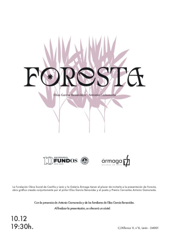 La galería Ármaga acoge, este miércoles 10 de diciembre, a las 19:30 horas, la presentación de Foresta, una carpeta que reúne obra gráfica del fallecido pintor Elías García Benavides y textos del poeta Antonio Gamoneda.