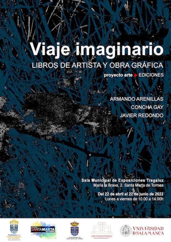 La exposición “Viaje Imaginario”, de los artistas Armando Arenillas, Concha Gay y Javier Redondo, reúne en la Sala Tragaluz del Ayuntamiento de Santa Marta de Tormes (Salamanca) una cuidada selección de libros de artista y obra gráfica del sello editorial independiente proyecto arte ►EDICIONES, del que son artífices y gestores. Se podrá visitar del 22 de abril al 22 de junio de 2022.