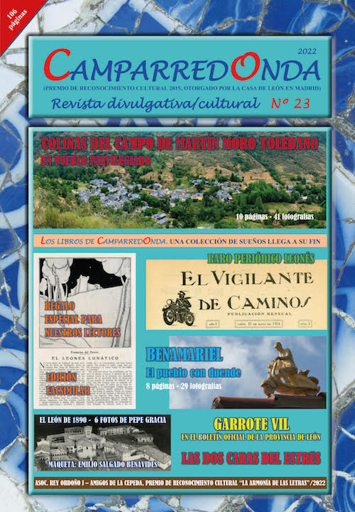 El Teatro San Francisco acogerá el próximo miércoles 11 de mayo, a las ocho de la tarde, la presentación del número 23 de la revista CamparredOnda, que llega acompañado de dos nuevos libros de Jesús San José Hernández y Gregorio Fernández Castañón. Ese día se entregará además el Premio de Reconocimiento Cultural “La Armonía de las Letras” 2022 a la Asociación “Rey Ordoño I” – Amigos de La Cepeda.