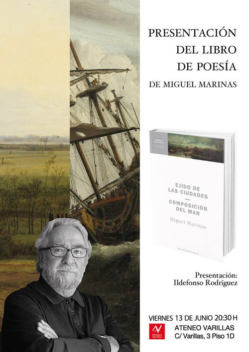 Por ELOÍSA OTERO.— El pensador, profesor y escritor leonés Miguel Marinas presenta el poemario Ejido de las ciudades. Composición del mar este jueves 12 de junio en Madrid y el viernes 13 de junio en León. En Madrid estará acompañado por Olvido García Valdés, mientras que en León actuará como presentador Ildefonso Rodríguez, autor del prólogo del libro, que reproducimos en esta entrada.