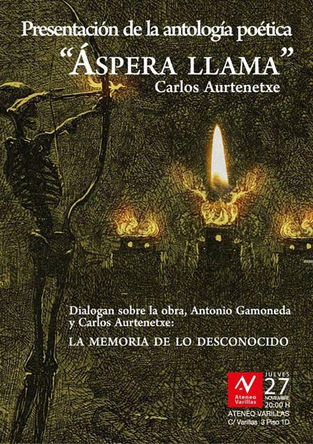 El poeta cordobés Antonio Agudelo presenta este miércoles 26 de noviembre su libro «El mundo líquido». Al día siguiente, jueves 27, el poeta vasco Carlos Aurtenetxe presentará, en diálogo con Antonio Gamoneda, su antología “Áspera llama”. Y el viernes 28, como todos los últimos viernes de mes, quienes quieran participar en el Ágora de la Poesía tienen cita en el anfiteatro de la leonesa plaza de San Marcos, a partir de las diez de la noche.