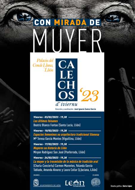 Con el título “Con mirada de muyer” arrancan este viernes 3 de febrero las jornadas culturales “Calechos d’iviernu”, organizadas por el Ayuntamiento de León y la Asociación Cultural Faceira. El programa de esta nueva edición está dedicado a la mujer e incluye tres conferencias y una charla concierto, coordinadas por José Ignacio Suárez García. Se celebrarán los viernes a las 19:30 horas, en el Palacio del Conde Luna.