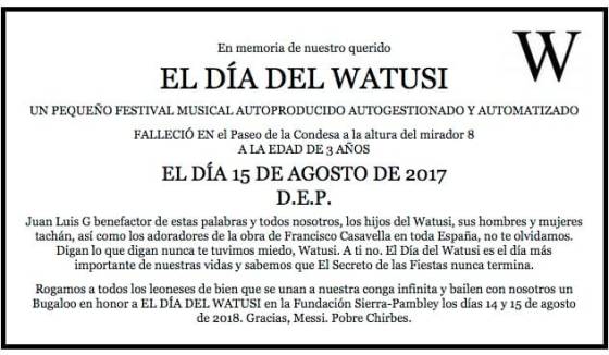 Esta esquela iba a salir publicada en el Diario de León el día 14 de agosto de 2018 pero el departamento comercial ha rechazado sacarla. Pues habrá que moverla, ¿no? / Toda la información sobre el Día del Watusi reversus EL SECRETO DE LAS FIESTAS, a solo dos clicks…