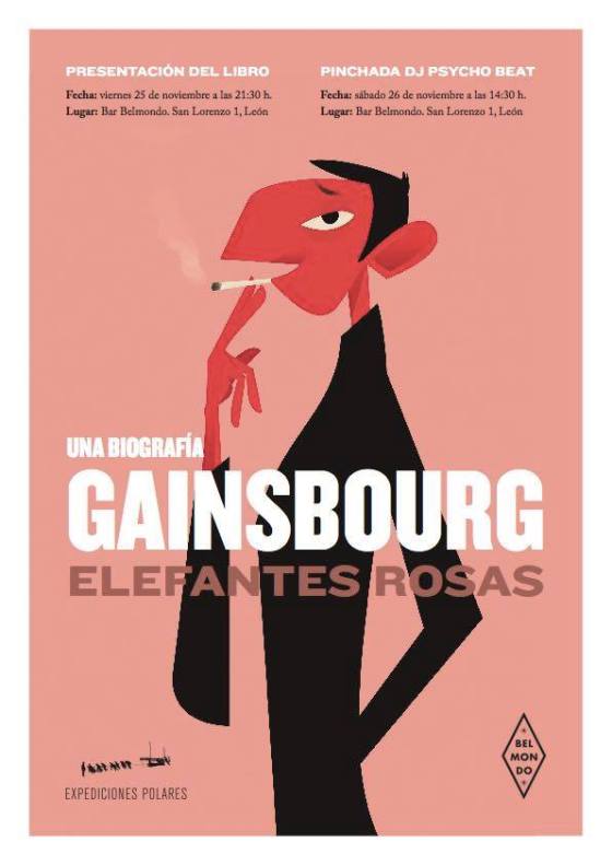 Este viernes 25 de noviembre, a las 21:30 horas, se presenta en el Bar Belmondo (C/San Lorenzo 1, León) el libro «Gainsbourg: Elefantes rosas» (editado por Expediciones Polares), escrito por el periodista donostiarra Felipe Cabrerizo. El acto contará con la presencia de Mónica García como presentadora. Además, el sábado 26, el propio Felipe Cabrerizo ofrecerá una sesión vermut (14:·30 horas) en el Belmondo, en la que pinchará temas de su programa radiofónico de Radio 3 PsychoBeat!.