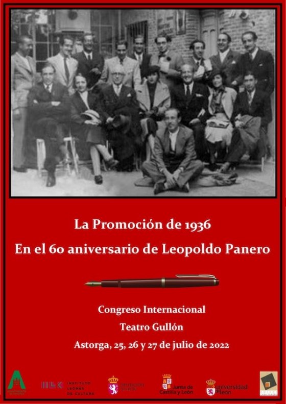 El Congreso Internacional «La Promoción de 1936. En el 60 aniversario de la muerte de Leopoldo Panero» se celebrará en el Teatro Gullón de Astorga los días 25, 26 y 27 de julio de 2022.