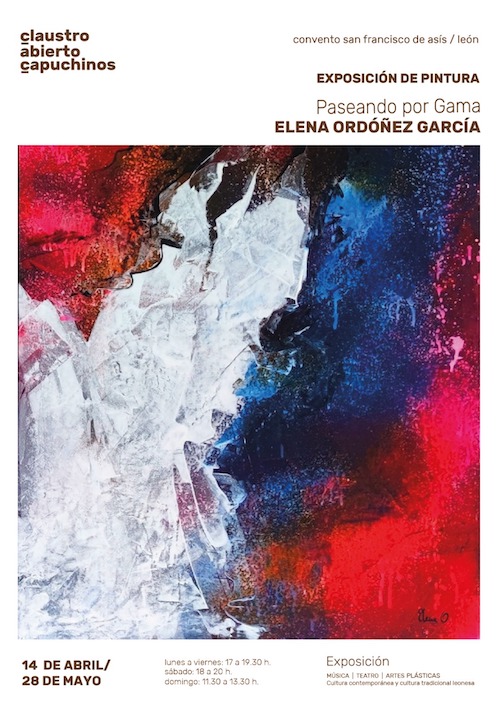 El espacio claustro abierto capuchinos (en el convento de San Francisco, en León), dentro de su programa dedicado a las artes plásticas, retoma su actividad de las exposiciones y en esta ocasión lo hace de la mano de la pintora asturiana Elena Ordóñez García, con su exposición «Paseando por Gama», que se inaugura este viernes 14 de abril a las 18 horas.