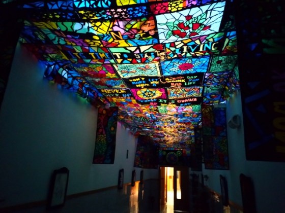 El colegio Marista San José (León) celebra su centenario con una gran vidriera de papel realizada por 190 estudiantes. Mide 100 metros cuadrados a modo de cubierta de uno de los pasillos y reúne imágenes muy diferentes, desde insectos y estrellas a astronautas y superhéroes. Se completa con otras vidrieras distribuidas en otros grandes ventanales del colegio. Se podrá ver desde este lunes 11 de marzo hasta junio.
