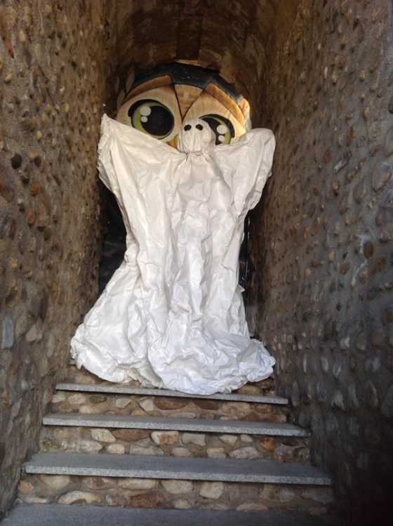 Los alumnos del aula de Educación Plástica y Visual de la ESO del colegio marista San José, en León, han realizado un espectro y lo han colocado en la zona de Puerta Castillo, en un pasaje que atraviesa la muralla desde el antiguo castillo que hoy ocupa el Archivo Histórico Provincial. El profesor del aula, Carlos Cuenllas, escribe sobre el sentido lúdico y didáctido de esta acción que indaga en el significado de Halloween y el Día de Todos los Santos, pero también en la historia de la ciudad.