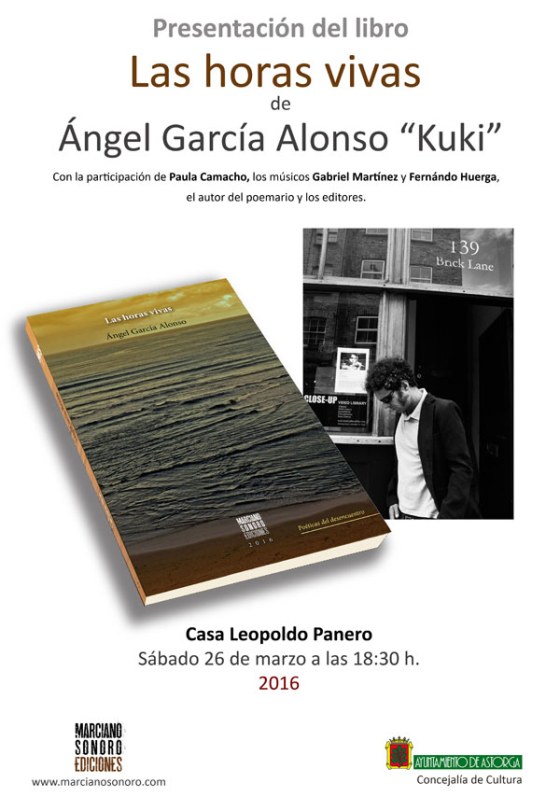 La Casa Panero, en Astorga (León), acoge este sábado 26 de marzo a las 18,30 horas la presentación del libro ‘Las horas vivas’ del escritor astorgano Ángel García Alonso «Kuki», publicado por Marciano Sonoro Ediciones. / Reproducimos el prólogo del libro, firmado por el escritor y traductor Mariano Antolín Rato, y tres poemas del libro.