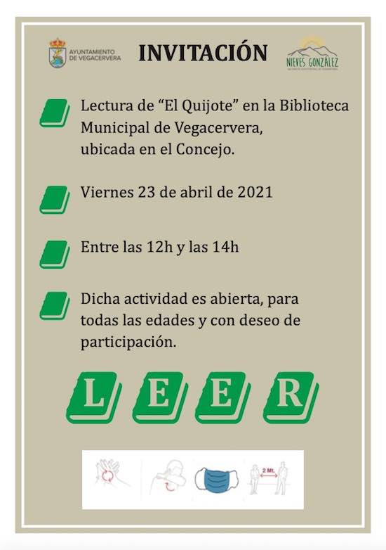 La Asociación SocioCultural “Nieves González”, de la localidad leonesa de Vegacervera, ha organizado para el próximo día 23 de abril, Día del Libro, una lectura compartida de El Quijote en la nueva Biblioteca municipal que han conformado los vecinos del pueblo.