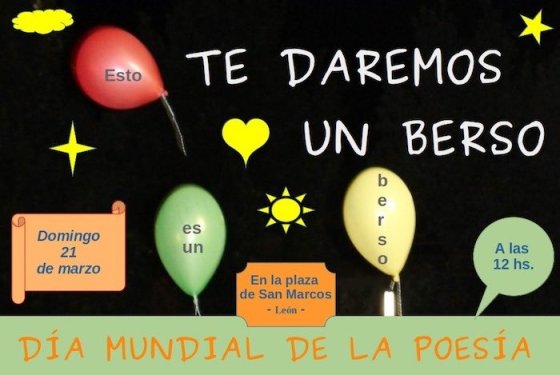 Este domingo 21 de marzo se celebra el Día Mundial de la Poesía. En León, los poetas del Ágora realizarán un acto simbólico, «sin aglomeraciones, pero muy poético», titulado TE DAREMOS UN BERSO (Verso + globo = berso). Será en la plaza de San Marcos, de 12 a 13’30 horas.