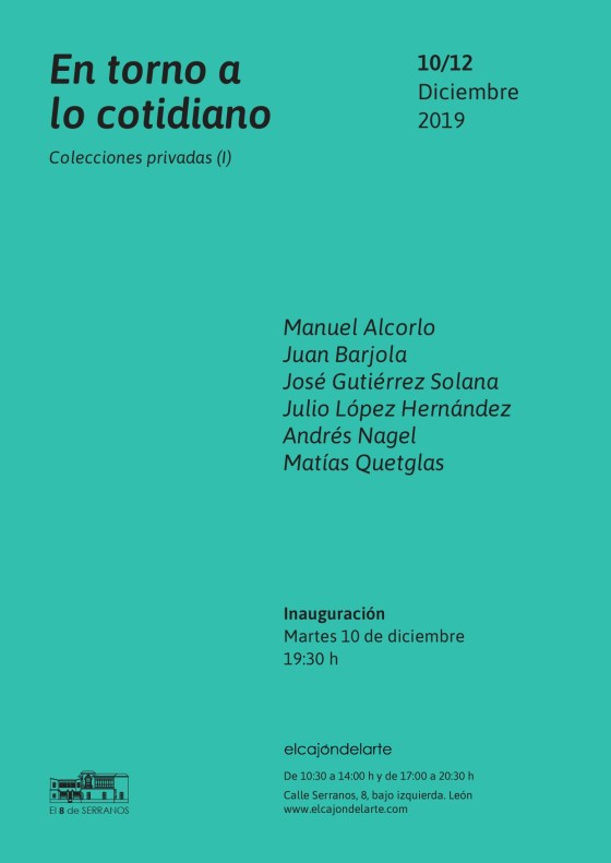 El 8 de Serranos (en León) colabora por segundo año consecutivo con El Cajón del Arte para poner en marcha una nueva exposición. En esta ocasión, bajo el título ‘Colecciones privadas (I). En torno a lo cotidiano’, muestra obras de seis artistas procedentes de las colecciones privadas que gestiona esta plataforma comercial. La inauguración será este martes 10 de diciembre a las 19:30 horas y se podrá visitar hasta el 12 de diciembre.