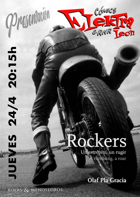 De forma paralela a la exposición que podrá contemplarse en el Centro Leonés de Arte (CLA) hasta el próximo 8 de junio, el fotógrafo y músico leonés Olaf Pla Gracia presenta este jueves 24 de abril en la librería Elektra Cómics ‘Rockers, un estrépito, un rugir’ (Eolas & Menoslobos). Un libro que se centra en sus dos grandes pasiones: el rock and roll y las motos. Acompañará al autor el editor Héctor Escobar. La presentación tendrá lugar a las 20:15 horas.