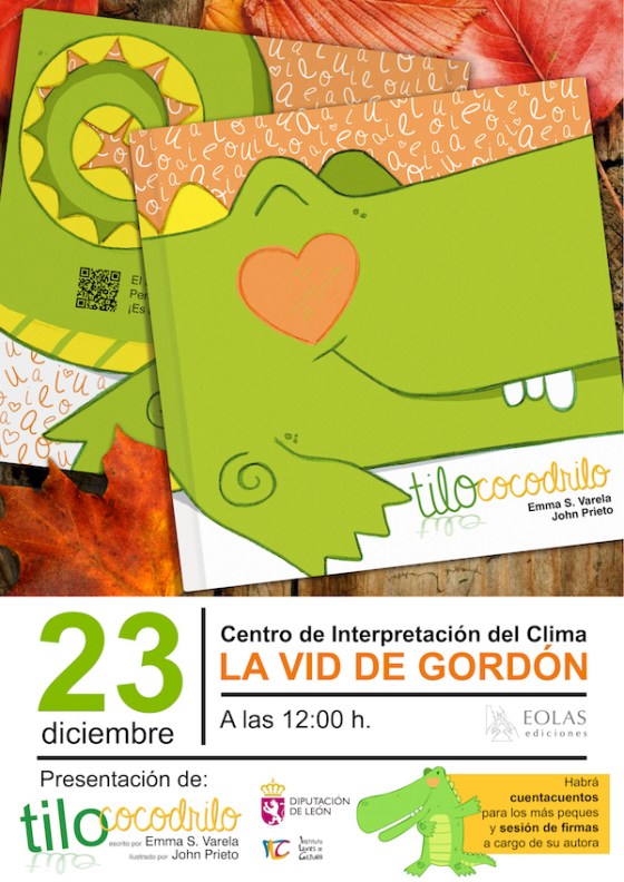 ‘Tilo Cocodrilo’, el nuevo libro de la escritora Emma S. Varela, conocida como Emma Illusioneta, se presentará el sábado 23 de diciembre, a las 12 horas, en el Centro de Interpretación del Clima de La Vid de Gordón (León). Por la tarde, a las 17.30 horas, habrá una Visita Guiada a la exposición colectiva “Estratos fracturados”, en la que participan más de cien artistas y fotógrafos vinculados a León, a cargo del comisario de la muestra, Luis García Martínez. Actividades gratuitas hasta completar el aforo.