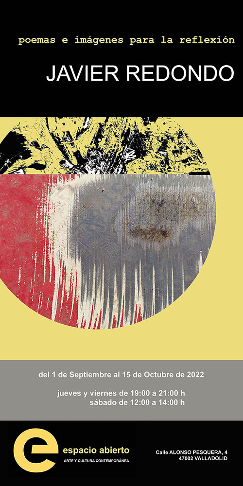 espacio abierto (en Valladolid) inaugura la nueva temporada y presenta, del 1 de septiembre al 15 de octubre, la exposición titulada «poemas e imágenes para la reflexión», de Javier Redondo.