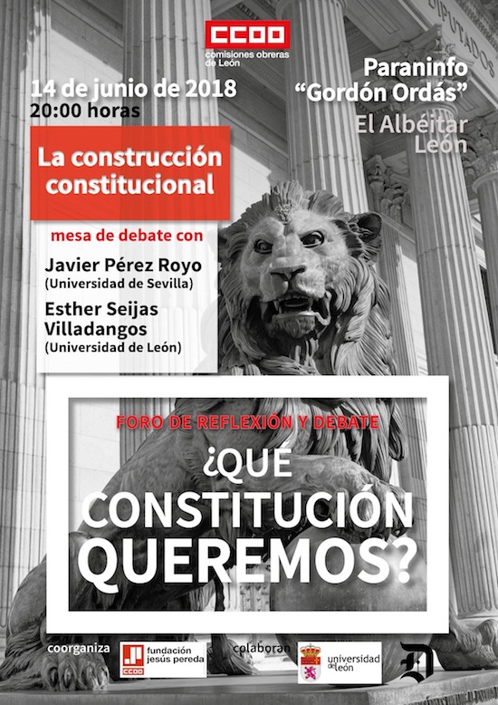 Dos reconocidos constitucionalistas, Javier Pérez Royo y Esther Seijas Villadangos, se encargarán de poner fin a un ciclo de reflexión y debate que se ha desarrollado desde el pasado mes de febrero, organizado por CCOO y la Fundación Jesús Pereda, en colaboración con la Universidad de León y el Diario de León. La cita es este jueves, 14 de junio, a las 20 horas, en la sala Gordón Ordás del edificio universitario El Albéitar.