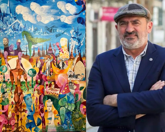 Por ELOÍSA OTERO.— «Las ciudades de Poniente». Así se titula el mural que el poeta y artista Juan Carlos Mestre ha realizado y donado a la Fundación Antonio Pereira, y que ya preside la pequeña sala de actos de la que fue vivienda del escritor villafranquino y de su esposa, Úrsula Rodríguez Hesles. En este mural de tres paños, Mestre ha plasmado el maravilloso mundo y los sueños del mago de los cuentos que nunca soñó en blanco y negro…