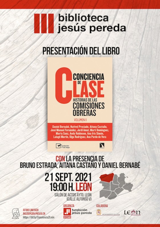 El libro “Conciencia de clase. Historias de las Comisiones Obreras. Volumen II” se presentará el próximo martes 21 de septiembre en el Salón de Actos del Ayuntamiento de León (calle Alfonso V), a las 19 horas. En la mesa estarán el economista y coordinador del libro Bruno Estrada, la periodista Aitana Castaño y el también periodista y escritor Daniel Bernabé.