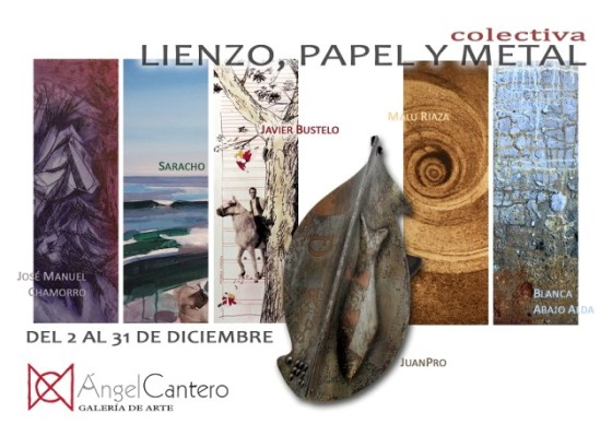La galería Ángel Cantero (León) inaugura este viernes 2 de diciembre la colectiva de Navidad “Lienzo, papel y metal”. La muestra, que permanecerá hasta el 31 de diciembre, reúne pintura, escultura, grabado y obra gráfica de seis artistas plásticos: Blanca Abajo Alda, Javier Bustelo, JuanPro, Malu Riaza, Saracho y José Manuel Chamorro.