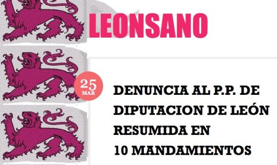 El blog LEÓN SANO se abrió en abril de 2013, hace casi dos años, de la mano de un grupo de funcionarios y trabajadores de la Diputación leonesa. Aquí esta todo cuanto han ido haciendo y denunciando durante los últimos años, y los sucesivos contenciosos presentados y ganados sin que la institución se dignara a cumplir las sentencias. Hasta que hace unos días decidieron presentar una denuncia penal sin precedentes contra todo el equipo de gobierno del PP en la Diputación de León.