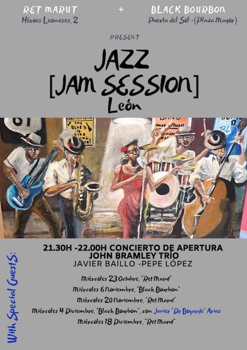 Este miércoles 23 de octubre, a partir de las 21:30 horas, se estrenan las Jam Sessions en el bar cultural leonés Ret Marut (en la calle Héroes Leoneses), para tocar y pasarlo bien con jazz, blues, funk y mucho más. El pianista John Bramley, con Pepe López (batería) y Javier Baillo (contrabajo), serán los encargados de abrir estas sesiones que se repetirán los terceros miércoles de cada mes. Al proyecto se suma también el bar leonés Black Bourbon, donde las sesiones tendrán lugar los primeros miércoles de mes.