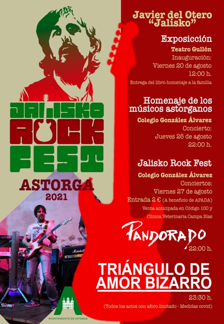 Jalisko Rock Fest nace con vocación de permanencia y con la intención de reunir a las mejores bandas rock del país, bajo el nombre del músico astorgano Javier del Otero, uno de los referentes culturales de las últimas décadas de la capital maragata, fallecido en 2019. El Festival contará con una exposición, un concierto homenaje de los músicos astorganos y un mini festival que incluye las actuaciones de las bandas Pandorado y Triángulo de Amor Bizarro.
