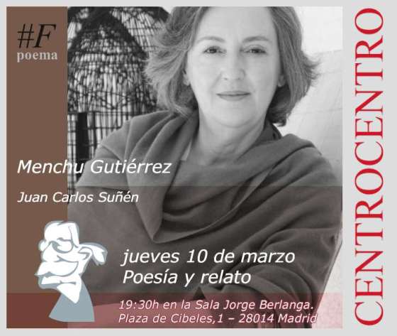 La poeta y novelista Menchu Gutiérrez (Madrid, 1957) llega este jueves 10 de marzo al ciclo «Favorables, Taller, Poema», que coordina Juan Carlos Suñén, en una nueva edición con novedades sobre las anteriores. Será en el CentroCentro de Madrid, a las 19.30 horas. En esta tercera cita de la temporada #Favorables 2016, Suñén y Gutiérrez analizarán las interacciones entre el relato y la poesía.