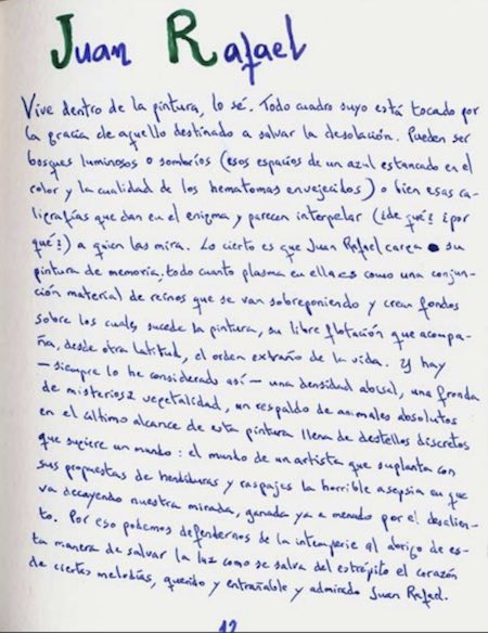 Por TOMÁS SÁNCHEZ SANTIAGO.— El suplemento de culturas “La sombra del ciprés”, del diario El Norte de Castilla, publicó el pasado viernes 15 de noviembre este artículo del poeta y escritor zamorano-leonés Tomás Sánchez Santiago (premio de la Crítica de Castilla y León en 2019 por su novela «Años de mayor cuantía») sobre la exposición «Bosques, libretas y otros cuadros» del pintor leonés Juan Rafael. Reproducimos el artículo con el permiso de su autor.