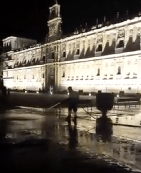 Por ELOÍSA OTERO.— No dio tiempo a que el tiempo y las pisadas de los paseantes borraran los más de 6.000 nombres de presos políticos republicanos pintados con tiza sobre el pavimento de la plaza leonesa de San Marcos. Poco después de que finalizara la performance impulsada por el artista Luis Melón Arroyo, el mismo 12 de septiembre por la noche, los servicios municipales de limpieza se ocuparon de eliminarlos a base de manguerazos de agua.