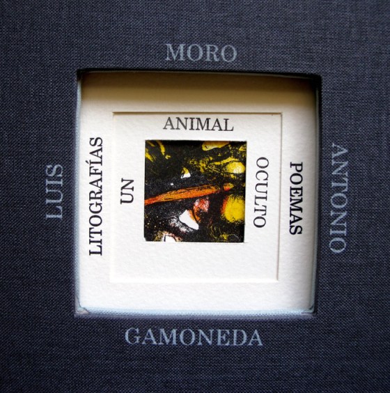Litografías y poemas de Luis Moro y Gamoneda en la carpeta «Un animal oculto»