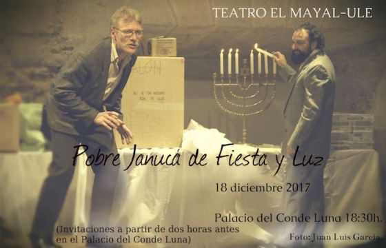 Teatro El Mayal, la compañía de teatro de la Universidad de León, representa este lunes 18 diciembre 2017, a las 18:30 horas, en el Palacio del Conde Luna (León), el espectáculo “Pobre Janucá de Fiesta y Luz”, una creación a partir de narraciones de origen hebreo que acerca la tradicional fiesta judía de las luces. Entrada libre hasta completar el aforo. Las invitaciones se pueden recoger a partir de dos horas antes de la actuación en el Palacio del Conde Luna.