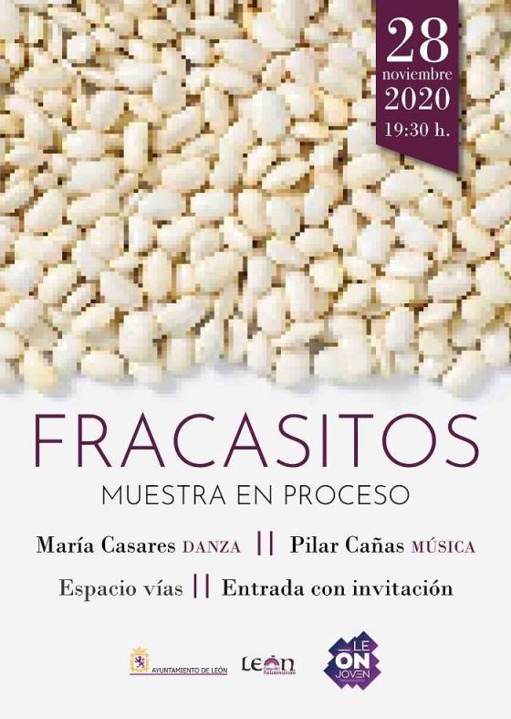 «Fracasitos», improvisación estructurada de música (con Pilar Cañas) y danza (con María Casares), se presenta en proceso este sábado, 28 de noviembre, en Espacio Vías (León) a las 19:30 horas. La pieza, seleccionada para formar parte de la programación cultural de la Concejalía de Juventud, Cul’20, explora el “fracaso” desde la práctica artística. Para obtener una entrada hay que enviar una solicitud por mail. Aforo superlimitado.