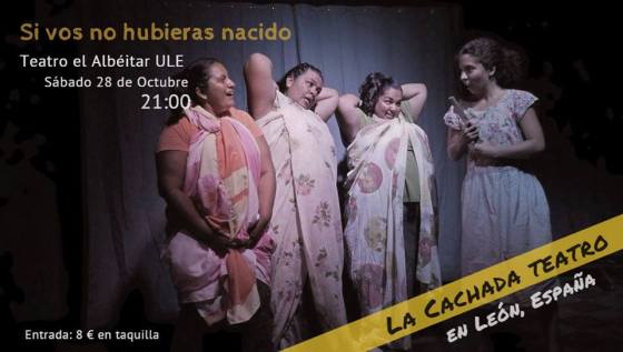 Este sábado 28 de octubre, a las 21 horas, la compañía salvadoreña de mujeres La Cachada se sube al escenario de El Albéitar (León), con la obra «Si vos no hubieras nacido», dentro de la XXVIII Muestra de Teatro Latinoamericano ULE. Entradas: 8 euros (50% de descuento para miembros de la Comunidad Universitaria) / En próximos días actuarán también en Segovia y Madrid.