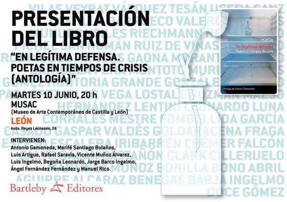 Este martes 10 de junio, a las 20 horas, la caravana de «En legítima defensa. Poetas en tiempos de crisis» hará una parada muy especial en el Museo de Arte Contemporáneo de Castilla y León (MUSAC) donde tendrá lugar un encuentro con el poeta Antonio Gamoneda, autor del prólogo del libro, y con otros nueve poetas que participan en la publicación.